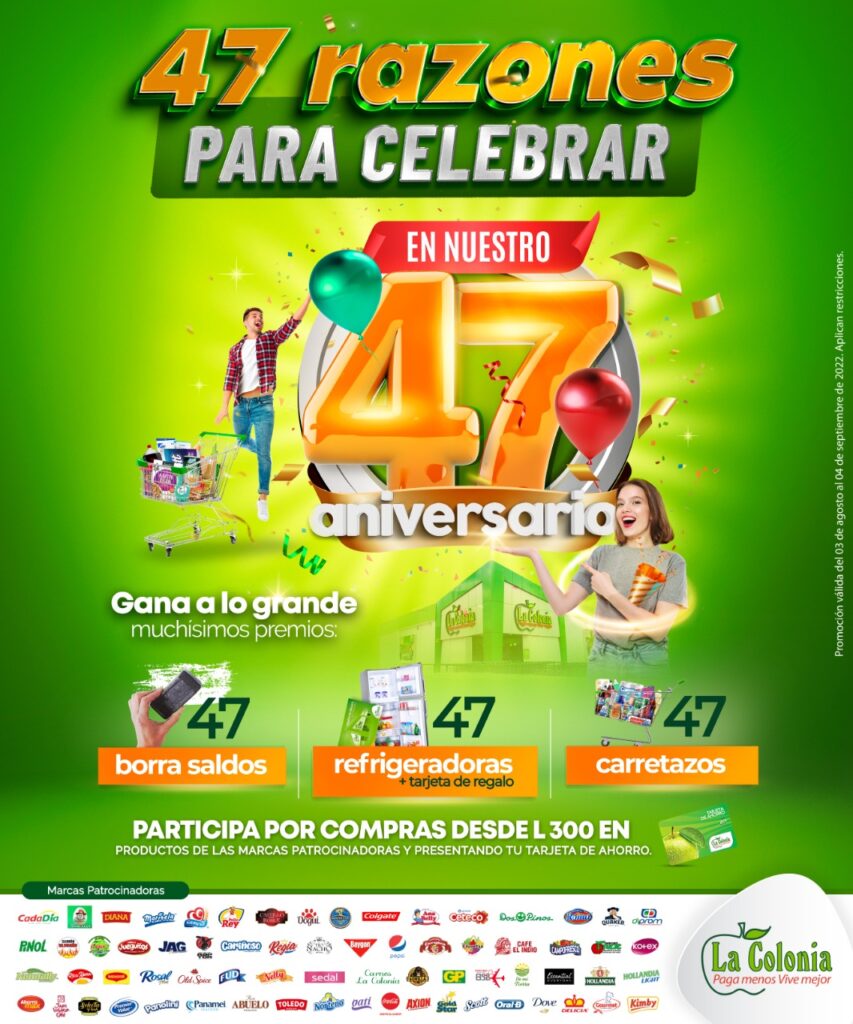 En nuestro 47 aniversario, la cadena líder de las familias hondureñas te trae para este fin de semana espectaculares ofertas en productos seleccionados: paga uno y llévate el segundo artículo con un 47% de descuento, en la categoría de desayunos, abarrotes, bebidas, licores, snacks, cuidado personal y del hogar. No olvides también de participar de […]