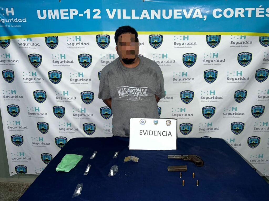 Agentes de la UMEP-12 capturan a individuo en posesión de droga y un arma de fuego robada, en Potrerillos, Cortés