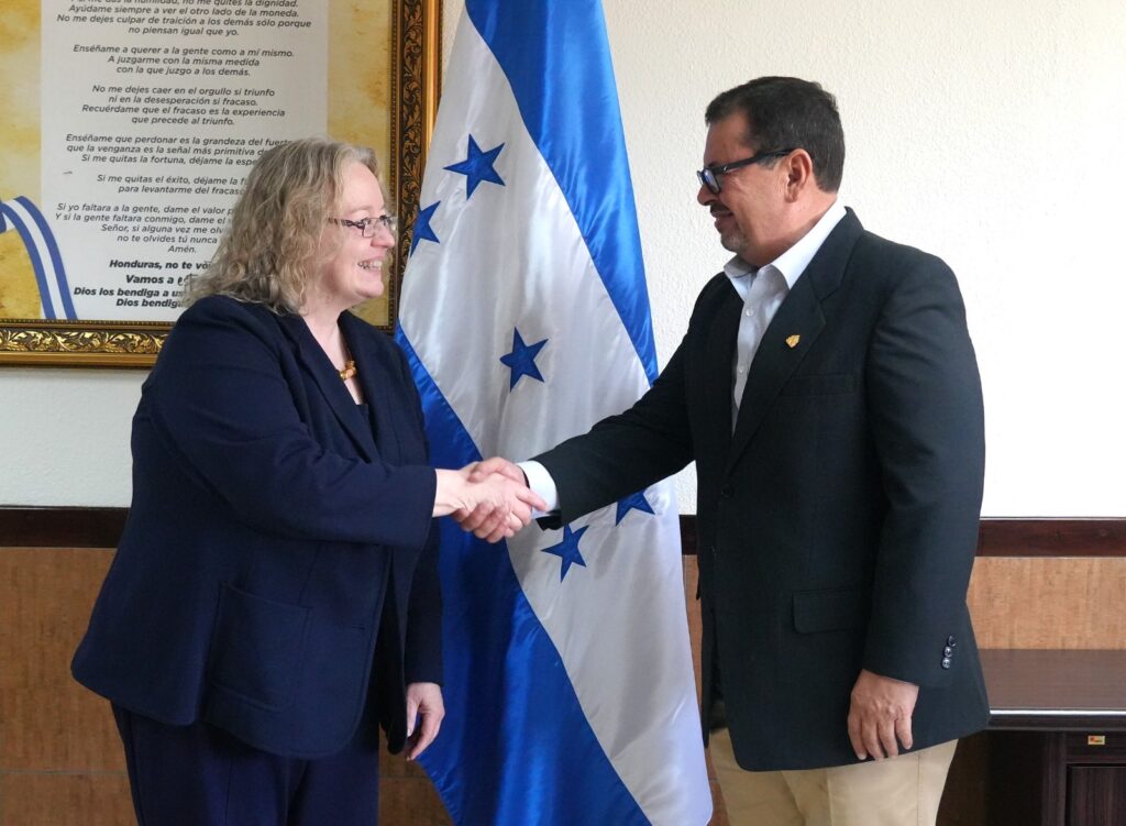 El ministro de la Secretaría de Agricultura y Ganadería (SAG), Moisés Abraham Molina, recibió a una comitiva del Departamento de Agricultura (USDA) de Estados Unidos para dar seguimiento a la implementación de programas que impactan el comercio agrícola del país. La comitiva estuvo integrada por Colleen Hoey, encargada de Negocios de la Embajada de Estados […]
