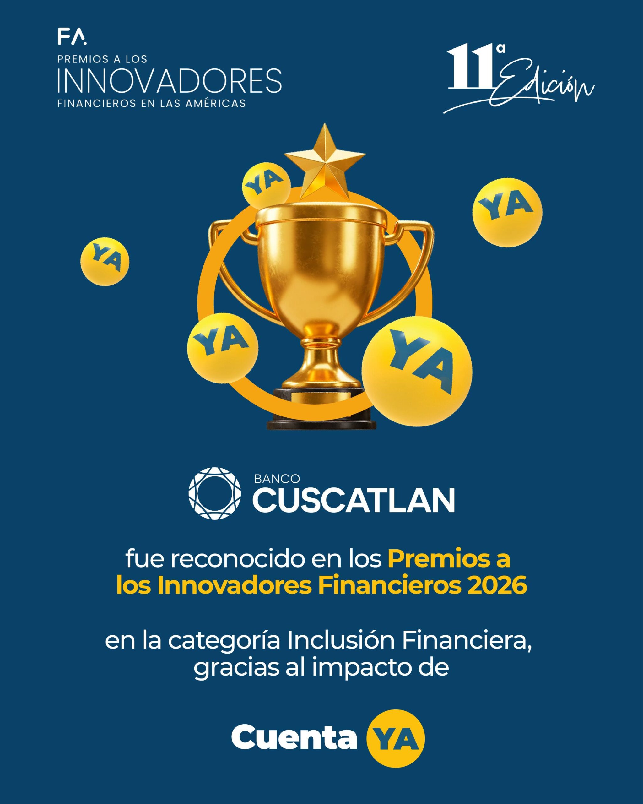 El reconocimiento a Banco CUSCATLAN fue otorgado por el impacto de Cuenta YA, una