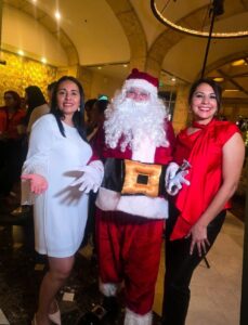 La sorpresa de la noche fue la llegada de Santa Claus, quien llenó de alegría a los presentes y compartió fotografías con niños y adultos, reforzando el espíritu navideño.