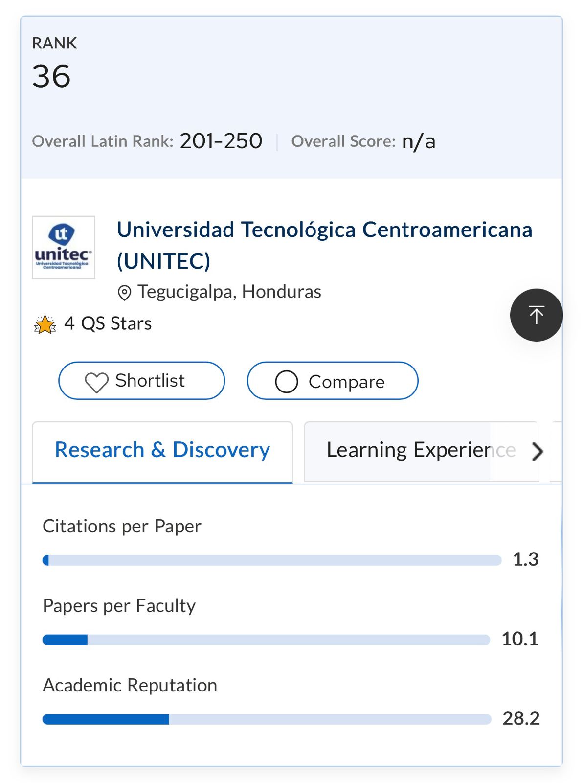 Nacionales UNITEC ELEVA A HONDURAS EN LOS PRINCIPALES RANKINGS INTERNACIONALES DE EDUCACIÓN SUPERIOR Syntia Valladares 8 de octubre de 2025