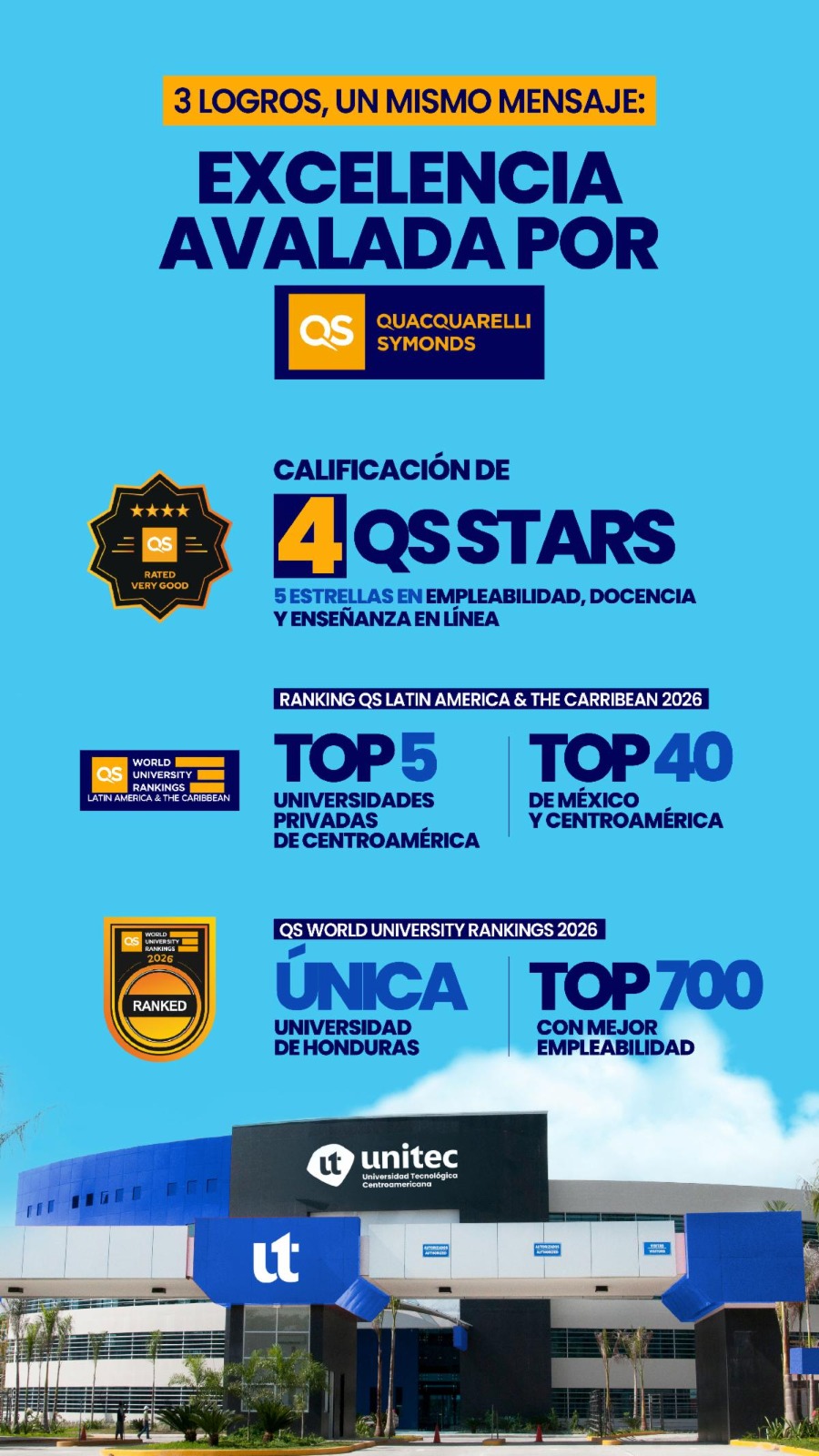 Nacionales UNITEC MEJORA Y SE CONSOLIDA EN EL RANKING QS LATIN AMERICA 2026, COMPARTE EL PRIMER LUGAR EN HONDURAS Y DESTACA EN REPUTACIÓN ENTRE EMPLEADORES Syntia Valladares 8 de octubre de 2025