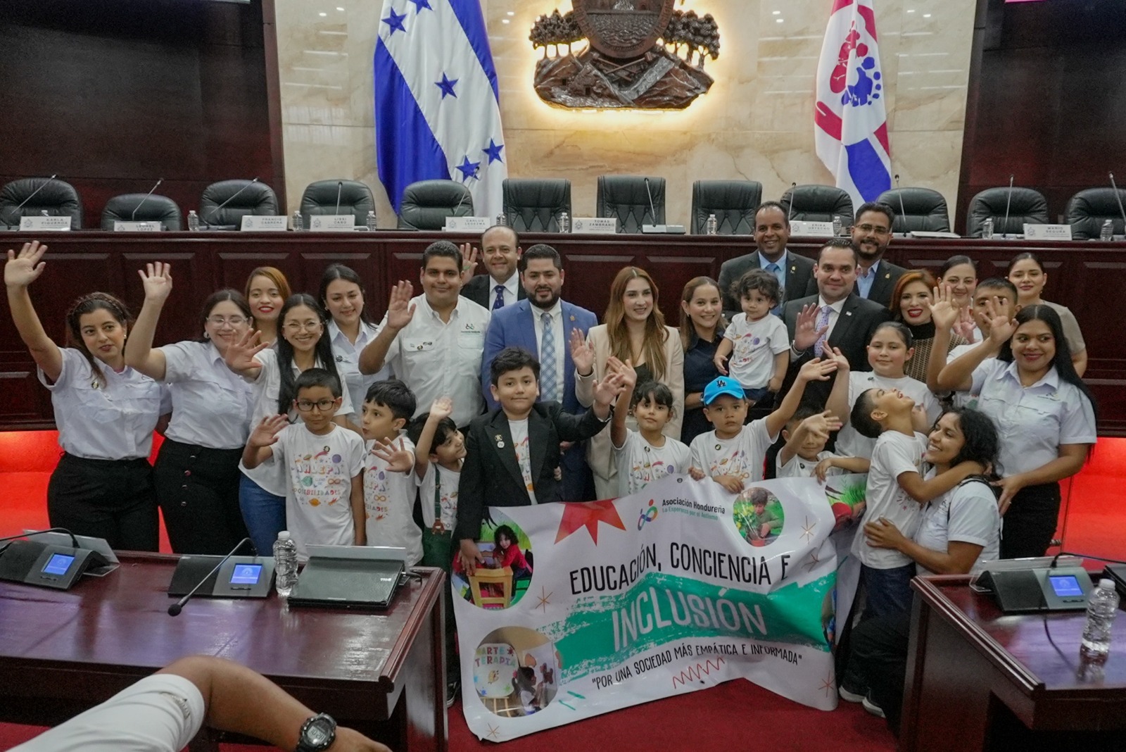 El presidente del Congreso Nacional, Tomás Zambrano, y su esposa, la directora del Despacho de Acción Social y Esperanza, Yohana Estrada de Zambrano, recibieron este jueves a miembros de la Asociación Hondureña La Esperanza por el Autismo (Ahlepa) en el marco del programa Congreso de Puertas Abiertas.