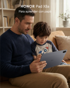 La HONOR Pad X8a es un regalo ideal para papá, con un diseño compacto y elegante. Su pantalla de 11″ con protección ocular, resolución nítida y 90Hz ofrece una experiencia visual cómoda para ver, leer o jugar. Equipada con un procesador Snapdragon 680 y una batería de 8,300 mAh, permite largas horas de entretenimiento y productividad. Su sistema de sonido con cuatro altavoces certifica calidad auditiva. Además, incluye funciones inteligentes como Multi-Ventana y compatibilidad con otros dispositivos HONOR, siendo una opción moderna y versátil para papás que disfrutan de la tecnología.