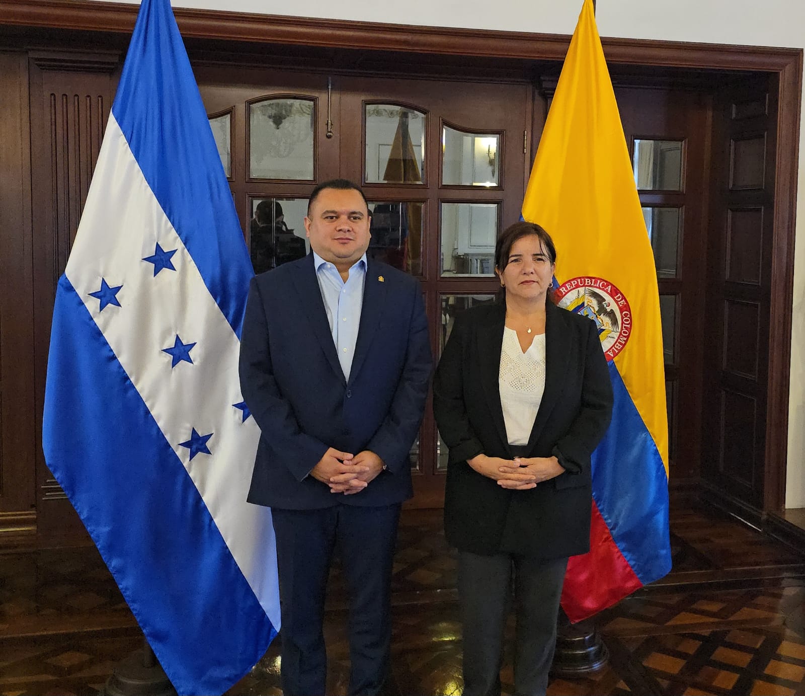 Tegucigalpa, Honduras. — El secretario privado de la Presidencia, Luis Castro, recibió en Casa Presidencial a la embajadora de Colombia en Honduras, Dora Lucía González Pinilla, en un encuentro orientado a fortalecer los lazos de trabajo, cooperación y relaciones bilaterales entre ambos países.