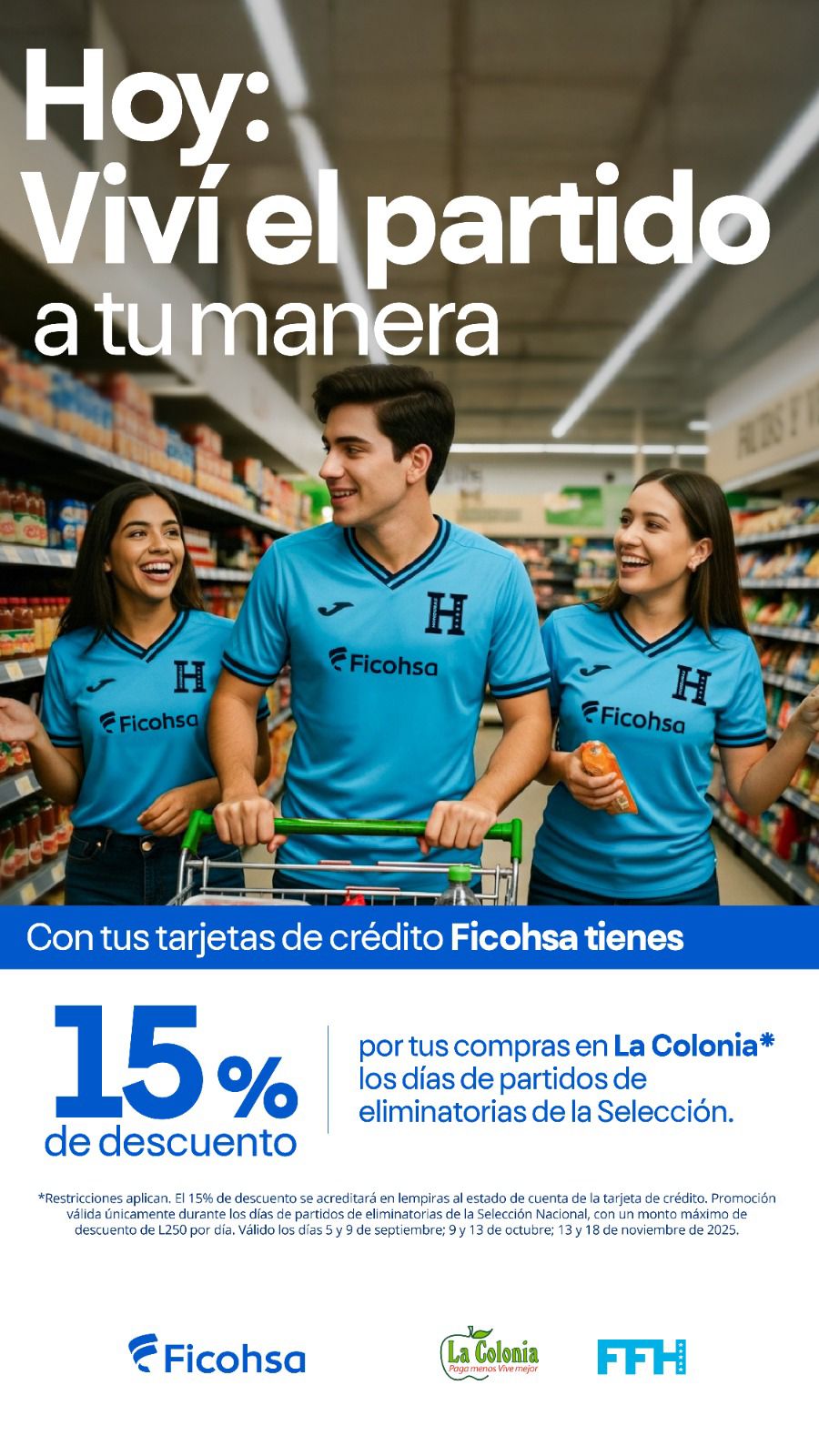 Este jueves 13 de noviembre disfruta un 15% de descuento en todas tus compras al pagar con tus tarjetas de crédito Ficohsa.
