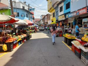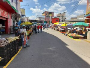 vendedores en las afueras de los puestos, así como los estacionamientos vehiculares,