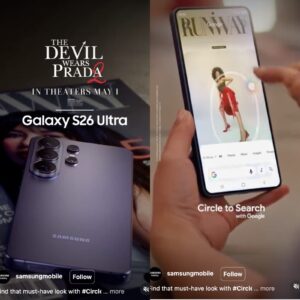 28 de abril de 2026 – Samsung lanzó una colaboración para celebrar el estreno global en cines de The Devil Wears Prada 2 (El Diablo Viste a la Moda 2) de 20th Century Studios, con un spot personalizado que presenta a Helen J. Shen como su personaje ‘Jin’, solucionando impecablemente una solicitud de último minuto de Miranda Priestly usando Circle to Search con Google en el nuevo Galaxy S26 Ultra.l